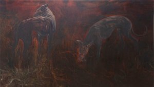 Röd himmel, oil on canvas 160x160cm, 2021Väv(V), oil on canvas 160x230cm, 2022