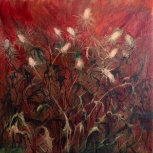 Fire, oil on canvas 77x64cm, 2025Red lake, oil on canvas 100x80cm, 2024Utan titel, oil on canvas 200x300cm, 2024Törnen, oil on canvas 100x95cm, 2022Hundra rötter dricker tyst, oil on canvas 120x210cm, 2021Tistlar i rött, oil on canvas 45x45cm, 2024Väv (IV), oil on canvas 140x170cm, 2021Untitled, oil on canvas 170x140cm, 2021Terra, oil on canvas 183x156cm, 2020Återsken, oil on canvas 45x45cm, 2021
